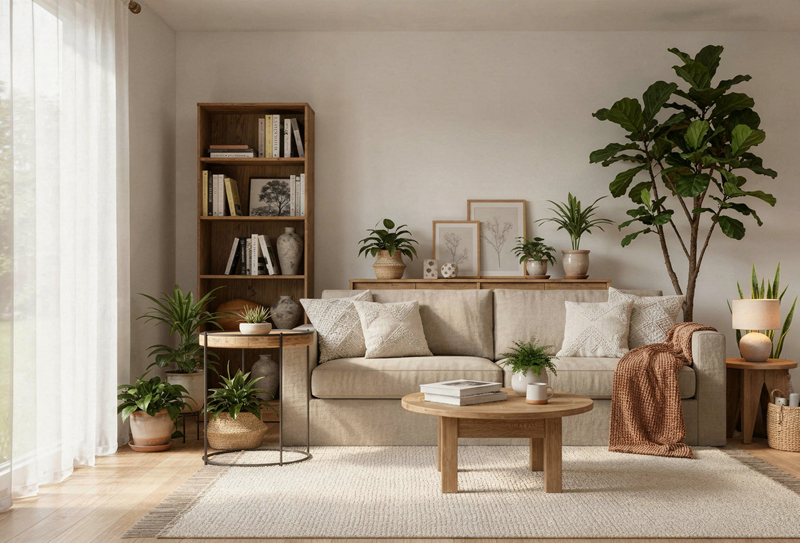 アースカラー×ホワイト:自然派ナチュラルルーム