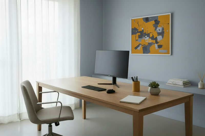 ライトグレー×マスタード:ちょっと大人な落ち着き空間