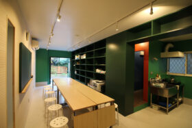 昔ながらのキッチンです。木漏れ日の中で料理ができますよ。