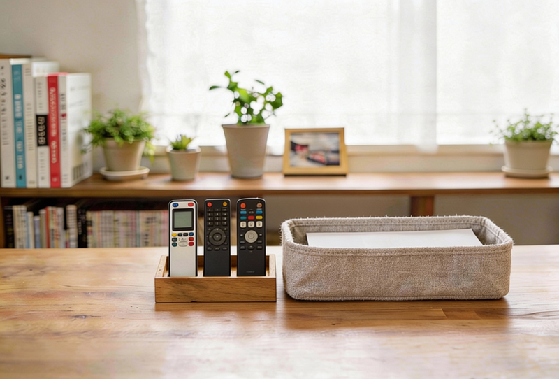 リモコンはここ、ハンコはここ、郵便物はこの箱…など、モノの住所を決めておくと、「どこやった問題」から解放されます。地味だけど、かなり重要!