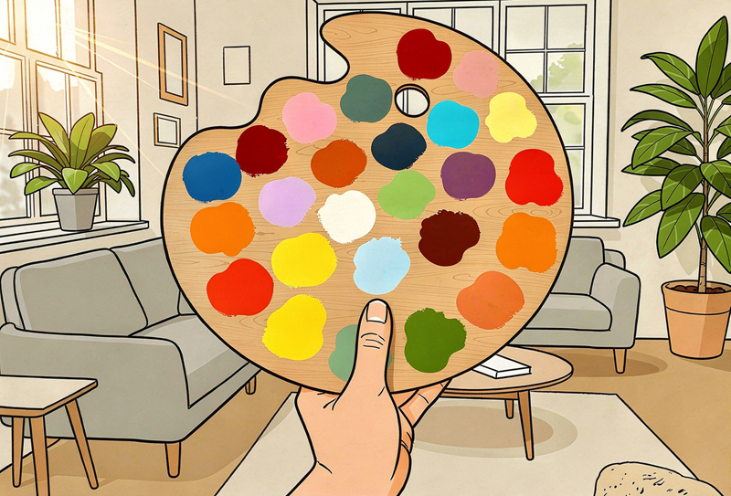 たとえば、寝室はグリーン(癒し)、リビングはイエロー(明るさ)、ワークスペースはブルー(集中)など、色で役割分担するとお互いハッピーに♪